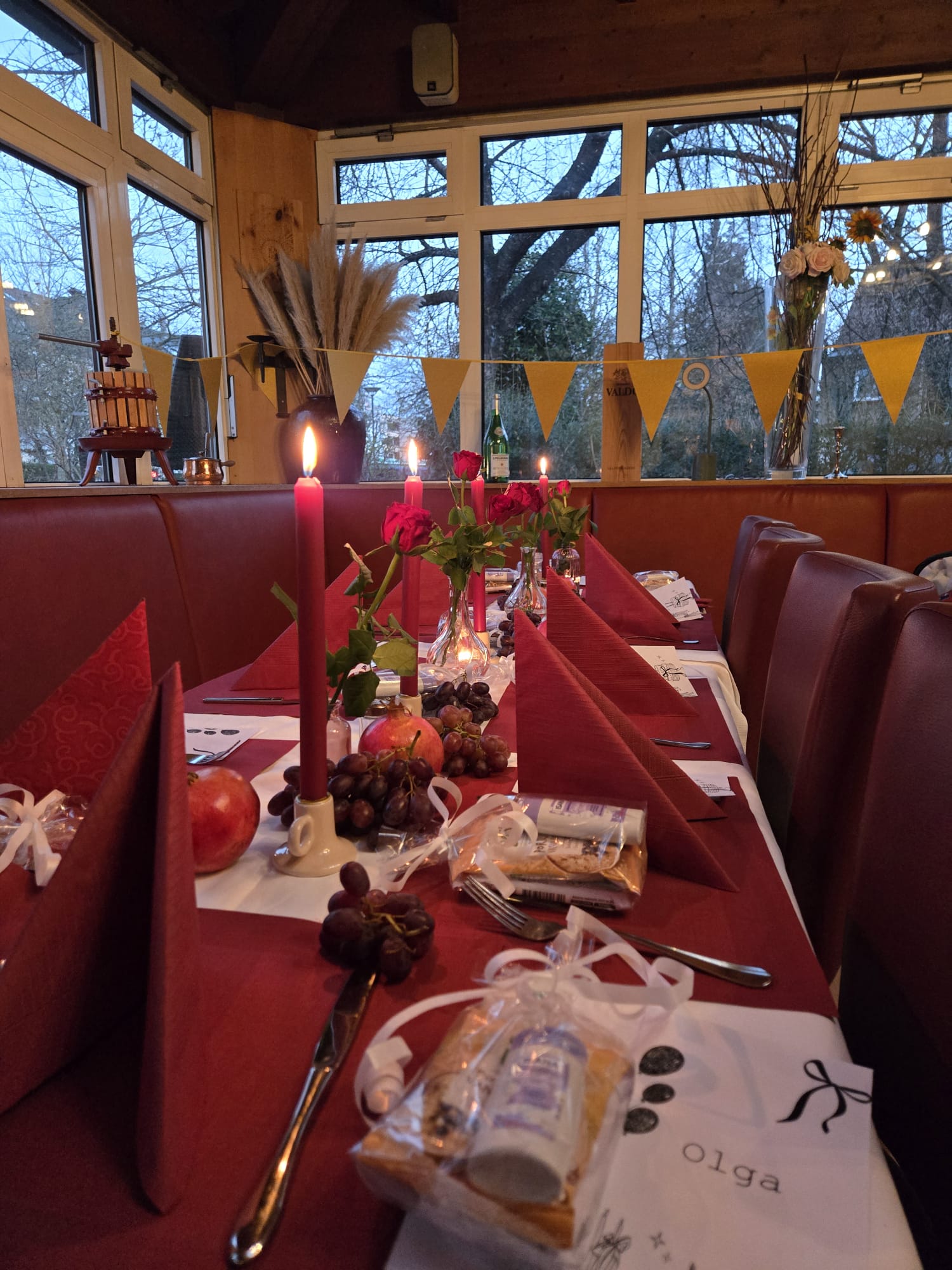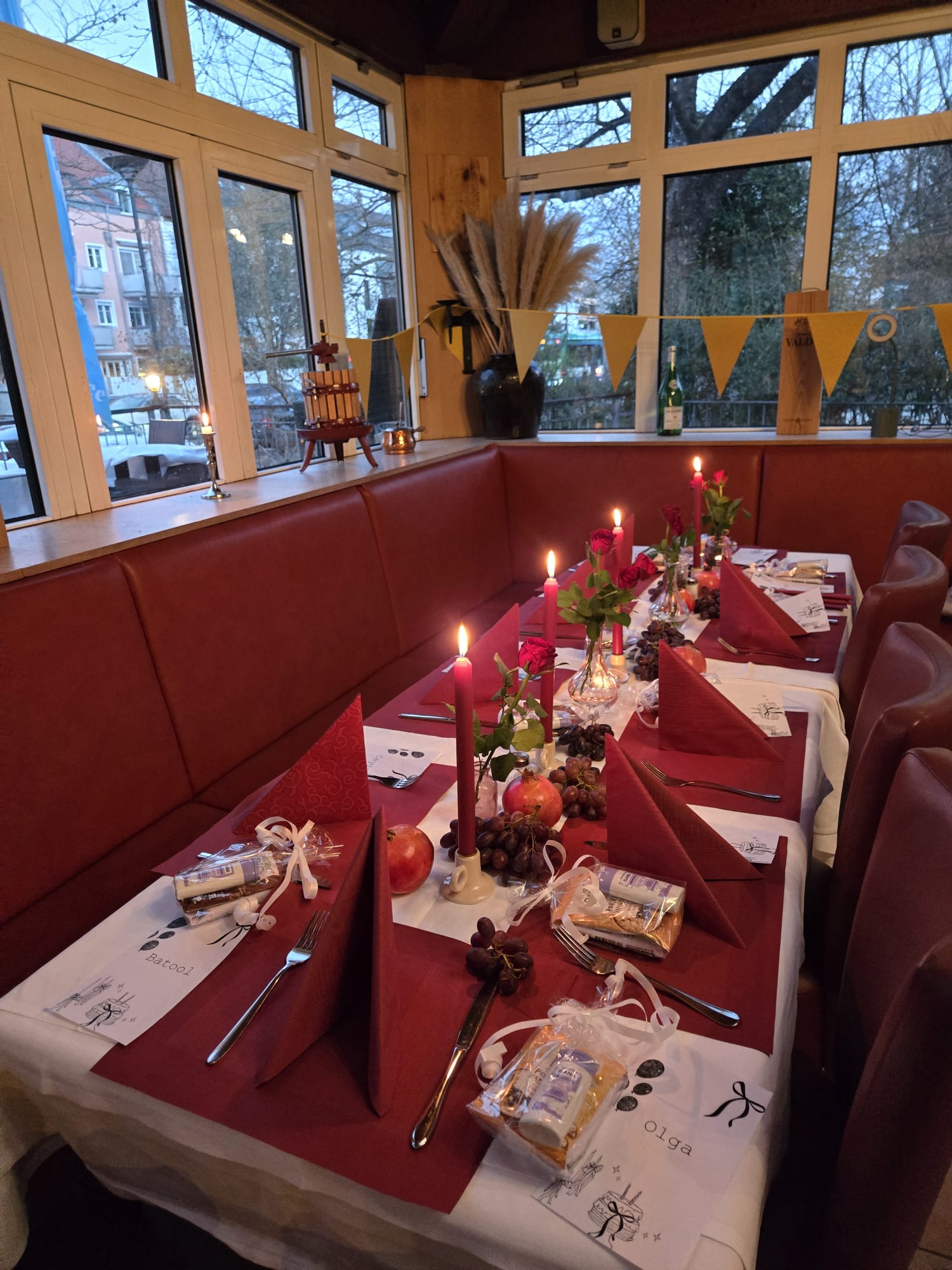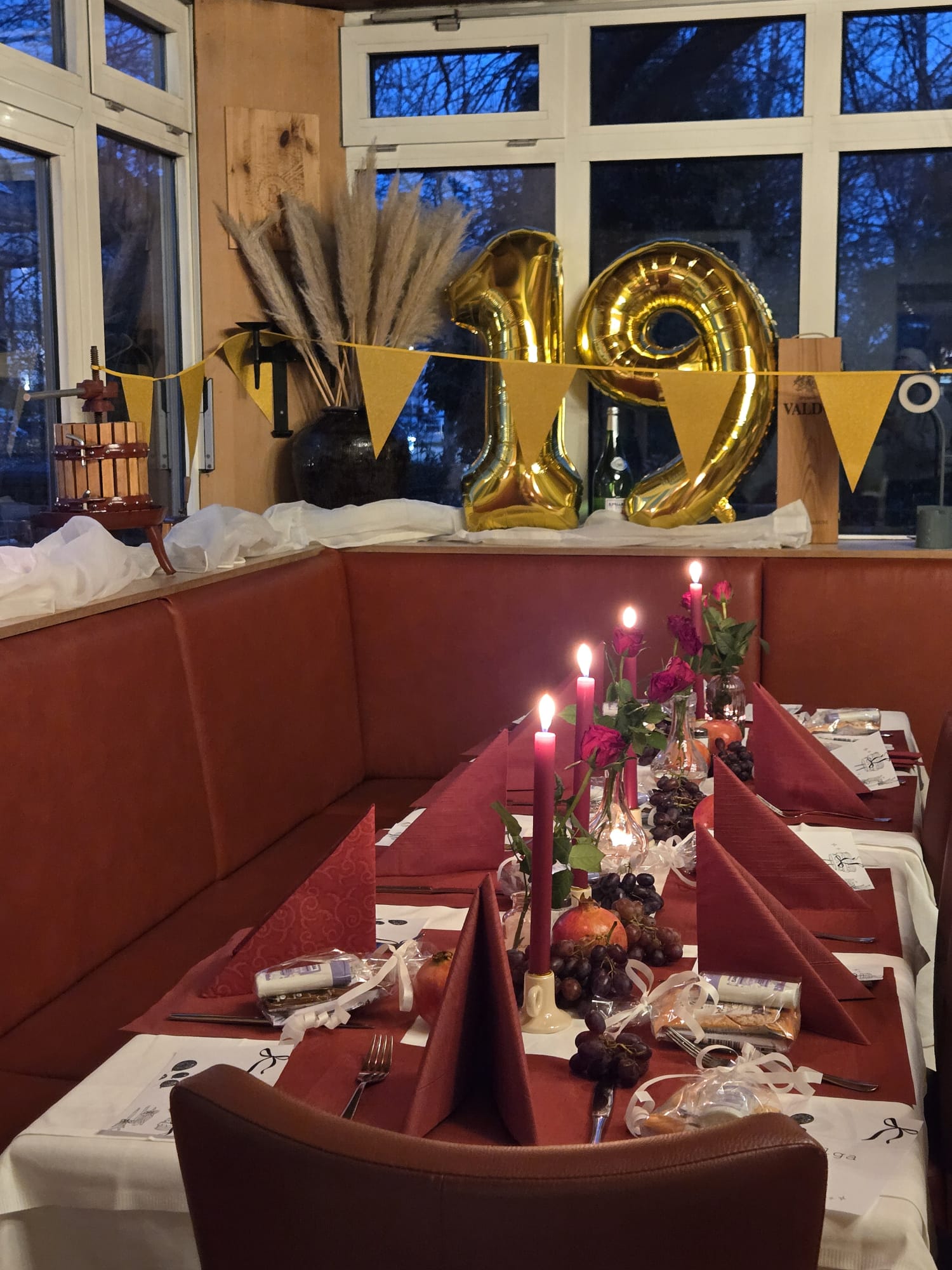 Ob Geburtstagsfeiern, Hochzeiten oder geschäftliche Anlässe, wir sorgen dafür, dass Ihre Feier unvergesslich wird. Genießen Sie unsere frisch zubereiteten Gerichte und exzellenten Weine in einem eleganten Ambiente, während unser freundliches Team alles dafür tut, um Ihre Wünsche zu erfüllen.